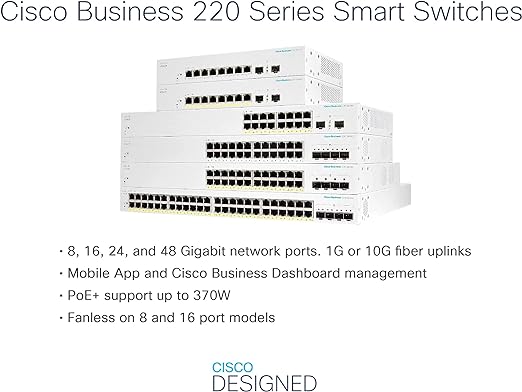 - The Cisco Business 220 Series are affordable smart switches with ease of use, security, and reliability for business-class networks. With intuitive dashboard, Power over Ethernet (PoE) options, and customizable features, these switches deliver a solid business network within your budget parameters. When you need a business-class network and cost is top priority, Cisco Business 220 Series provides an excellent solution.
