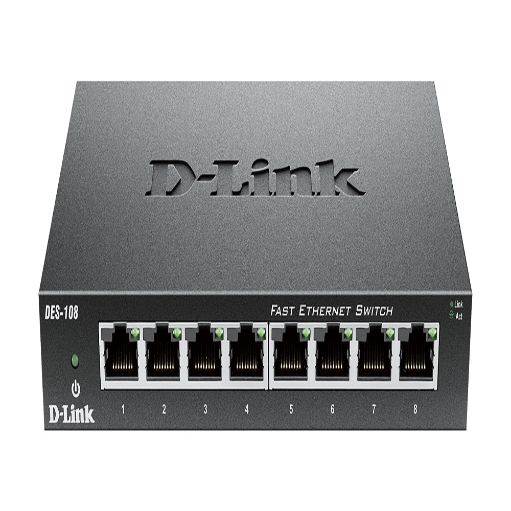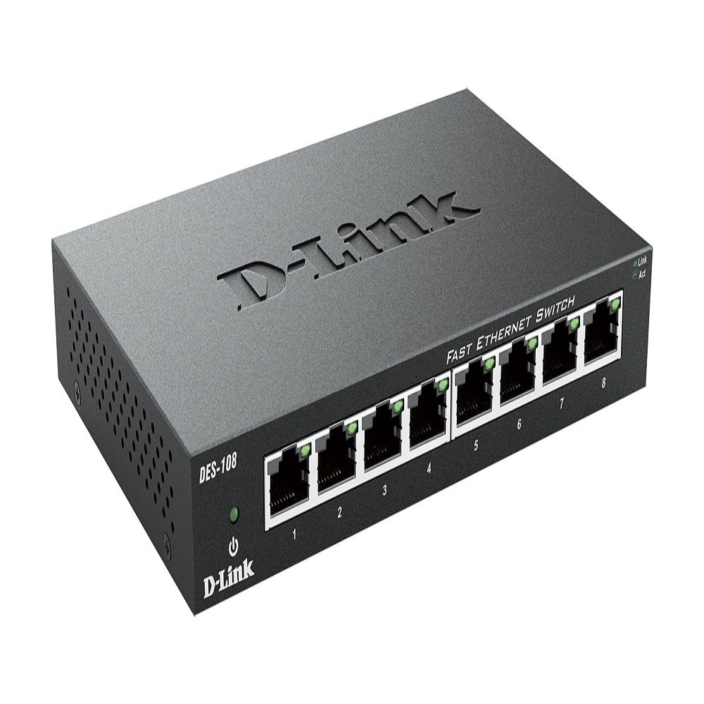 This 8-Port 10/100BASE-TX Fast Ethernet Switch is designed for the departmental and enterprise connection. Powerful and versatile, it eliminates network bottlenecks while giving users the capability to fine-tune performance. The DES-108 has a special front access design for Ethernet ports/LEDs to for easier control of network status. Also, the metal case design keeps cool, allowing for superior performance. Additionally, the DES-108 complies with IEEE 802.3az Energy-Efficient Ethernet (EEE) standards, making it energy efficient without losing connectivity or functionality.