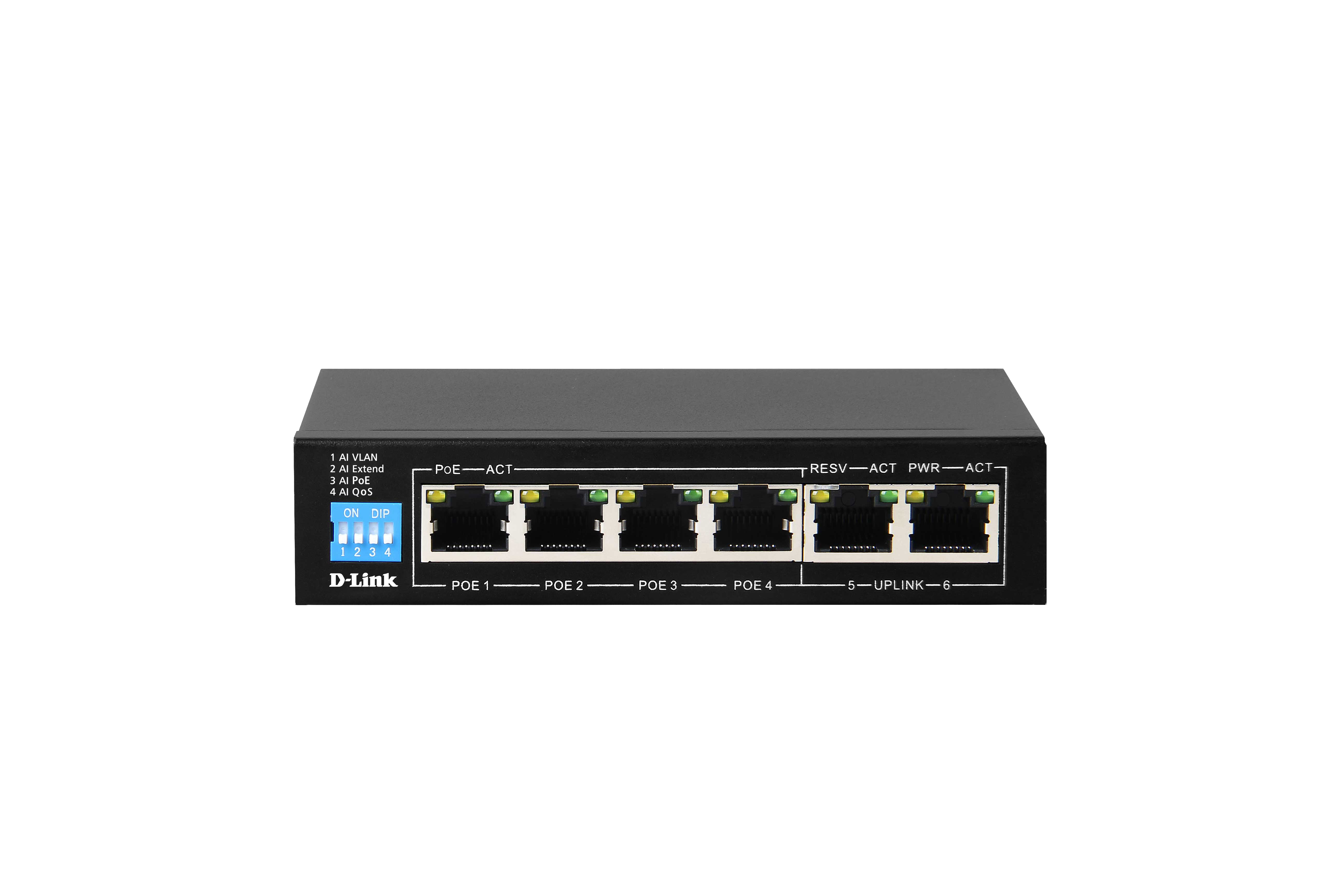 The D-Link DES-F1006P-E is a 6 port 100Mbps with 4 10/100 Mbps PoE ports, 2