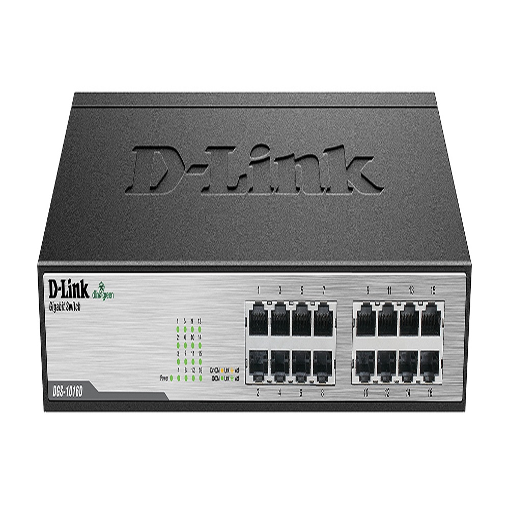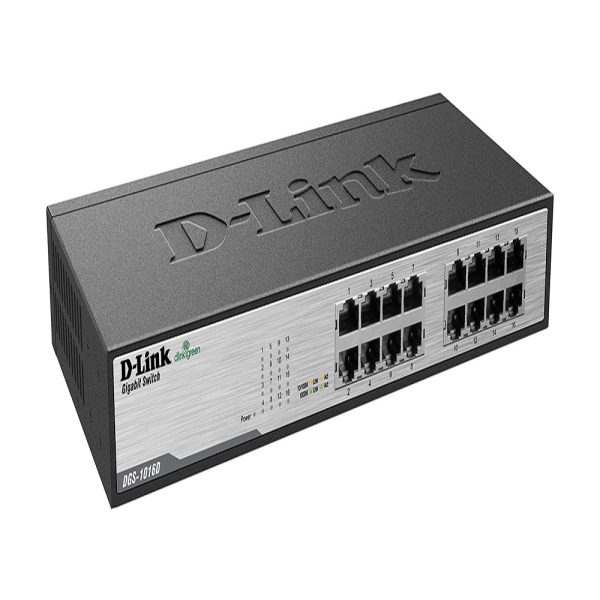 The DGS-1016D automatically powers down ports that have no link and budgets power output for different Ethernet cable lengths. It also complies with the EU’s RoHS directive, restricting the use of certain hazardous materials.