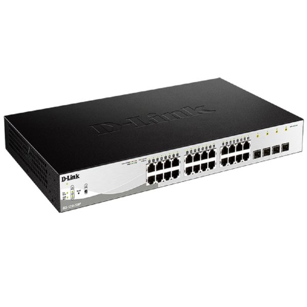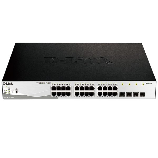 The configurable WebSmart DGS-1210-28MP switch, equipped with 24 10/100 / 1000Base-T ports with PoE support and 4 1000Base-X SFP ports, supports D-Link Green technology and advanced management and security features, providing high performance and network scalability . Management functions include SNMP, Web-based management, D-Link Network Assistant and a simplified command-line interface (CLI) via Telnet. The DGS-1210-28MP supports Auto Voice VLAN, providing the highest priority for “voice” traffic. In addition, the switch is equipped with intelligent fans that are able to change the rotation speed depending on the temperature, which saves energy and reduces noise.
