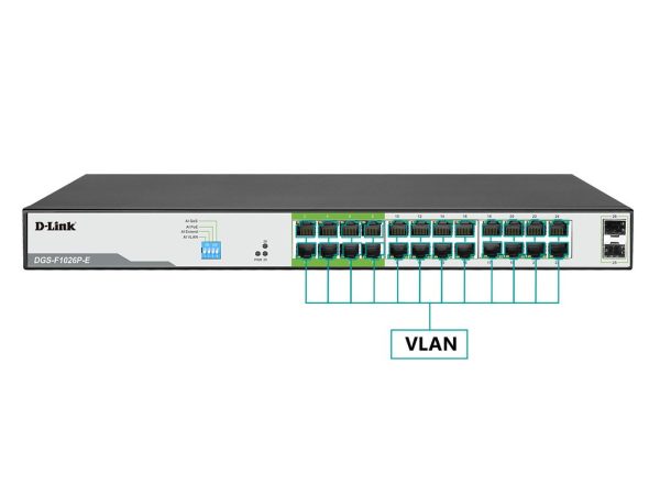 The D-Link DGS-F1026P-E Gigabit PoE Switch comes with 24 10/100/1000 Mbps PoE ports & 2 Gigabit SFP uplink ports. This Switch enables users to easily connect and supply power to PoE-capable devices such as wireless Access Points (APs), IP cameras.