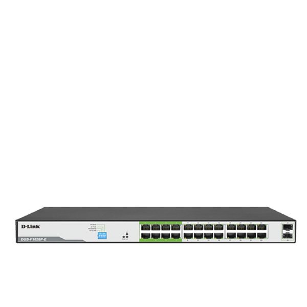 The D-Link DGS-F1026P-E24 Port Switch with 10/100/1000Mbps and 2 SFP Ports enables you to connect Power over Ethernet (PoE) devices such as wireless access points (APs), IP cameras, and IP phones to the network. The DGS-F1026P-E can also connect other Ethernet devices like computers, printers and a Network Attached Storage (NAS) to fit into any type of network application.