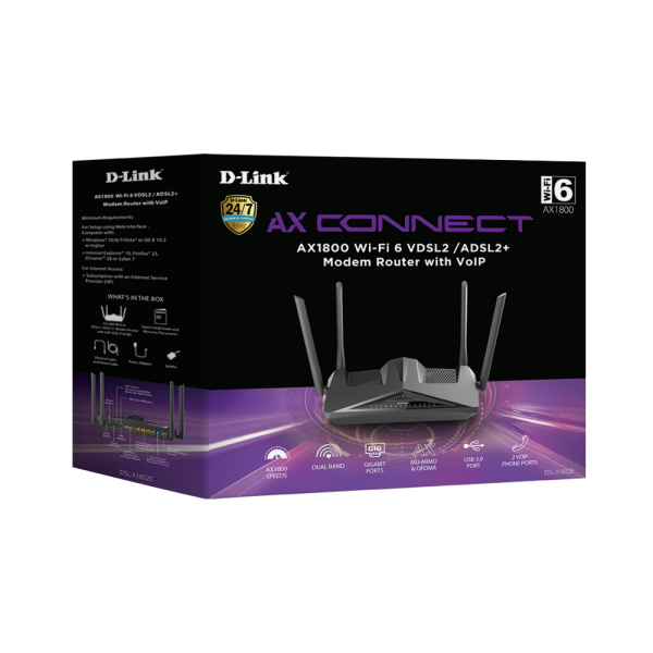 The DSL-X1852E uses Wi-Fi 6’s cutting-edge Orthogonal Frequency Division Multiple Access (OFDMA) technology. Small data packets destined for multiple devices are transmitted together and never have to queue up again. Perfect for Smart Homes filled with bandwidth-hungry IoT devices battling for bandwidth.MU-MIMO technology helps distribute the flow of data to multiple devices simultaneously. With Wi-Fi 6 technology the DSL-X1852E leverages the multi-user version of OFDMA and MU-MIMO for better efficiency of upstream and downstream transmissions, unlike previous Wi-Fi 5 technology where MU-MIMO could only operate simultaneously in downstream transmissions. This combination greatly increases capacity, coverage and performance in ultra-high-density environments. The DSL-X1852E’s VPN Wizard lets you configure LAN-to-LAN and remote access VPN connections while its built-in passthrough feature also allows any devices connected to the Router to establish outbound VPN connections.