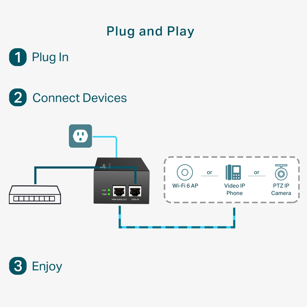 The Omada PoE++ Injector POE170S fully complies with IEEE 802.3af/at/bt (type 3) standards with up